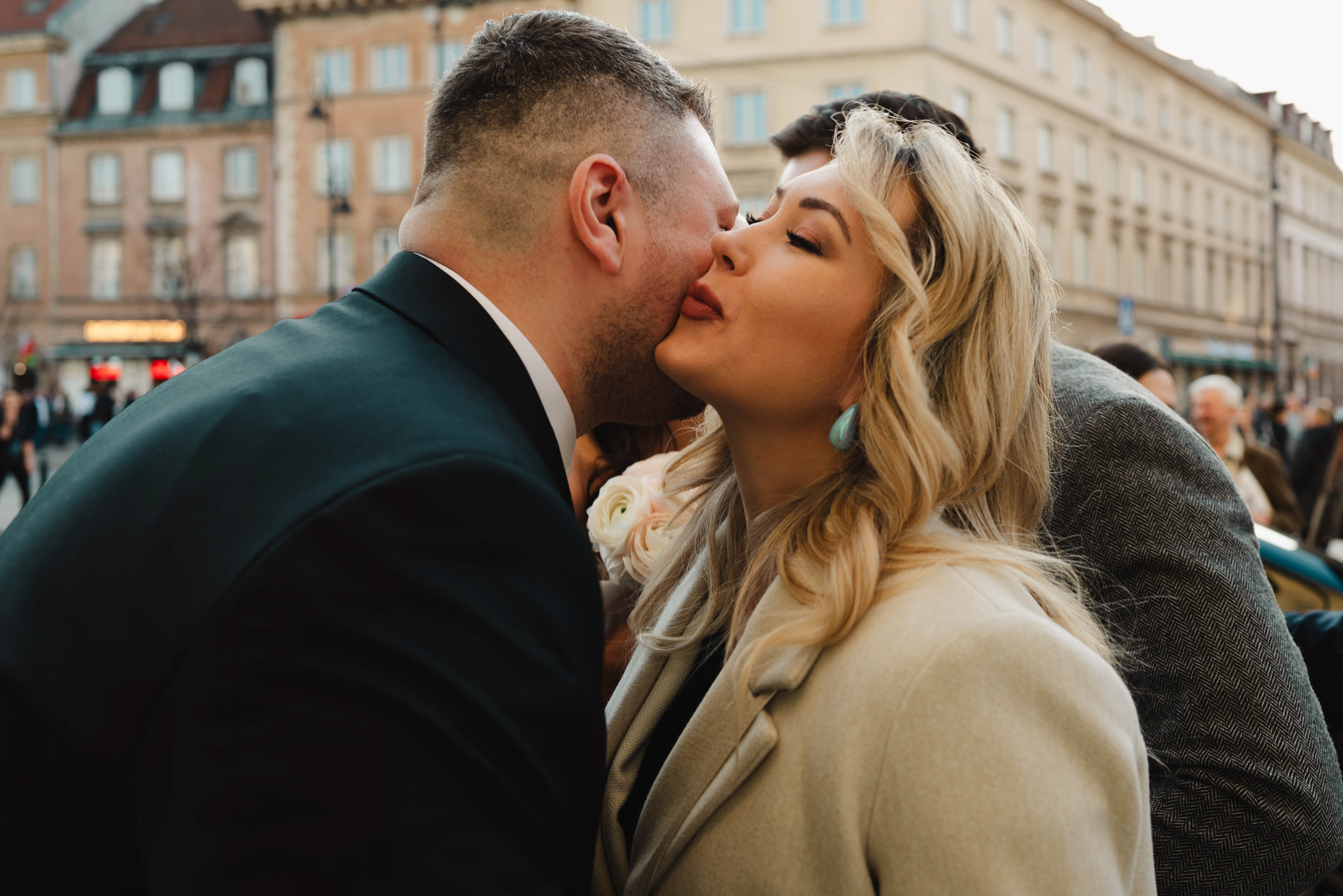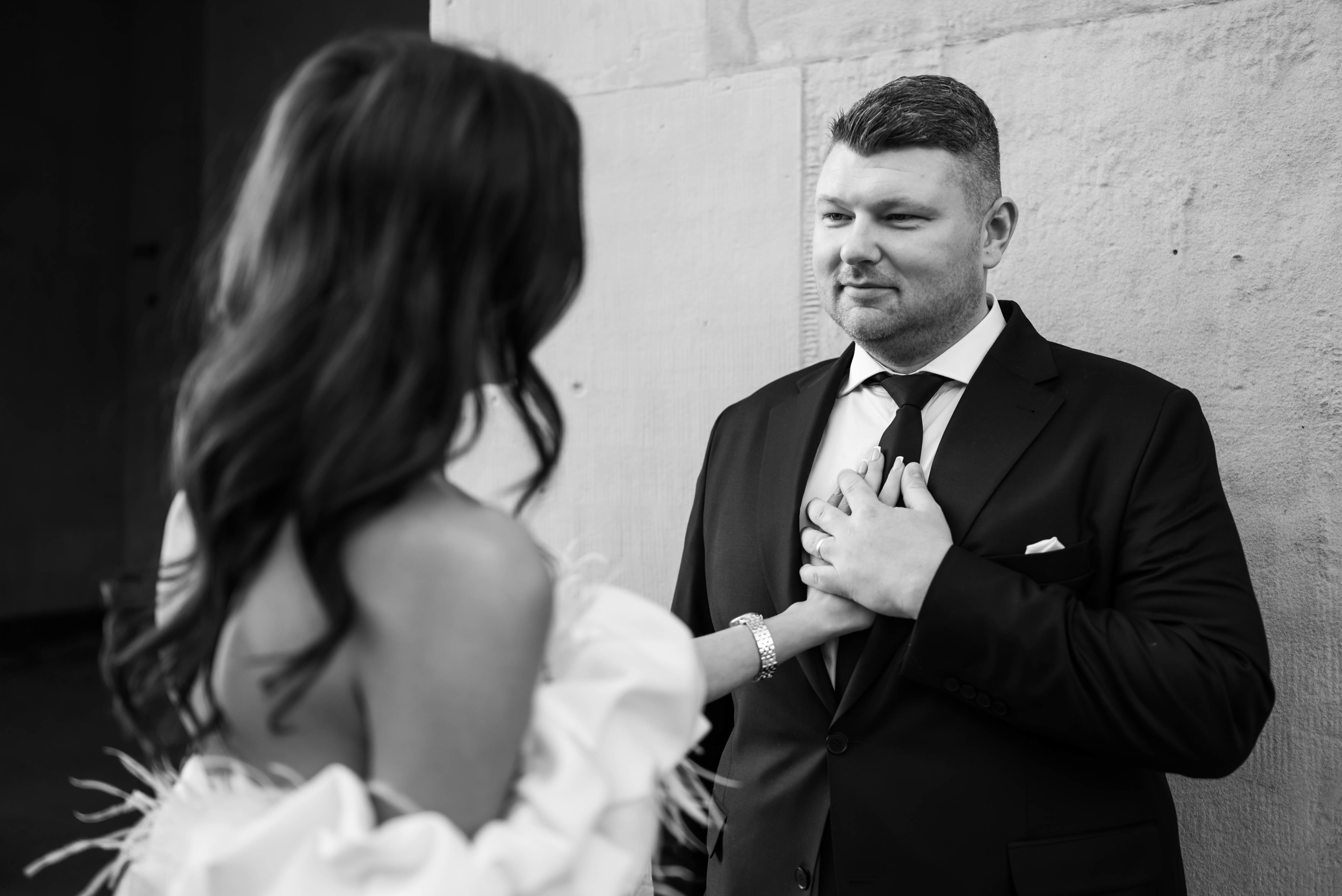Pisząc o tym dniu, znów czuję tę radość. Czułość między nimi, spokój, szczerość spojrzeń i ta piękna obecność. To był dzień pełen uśmiechów, wzruszeń i tych małych momentów, które jako fotografka chcę łapać najmocniej, jak się da. W pięknym kościele św. Anny na warszawskiej Starówce Justynę do ołtarza odprowadził tata i już wtedy wiedziałam, że będzie wyjątkowo. Kościół pełen bliskich, szczerych emocji, ciepłych słów…